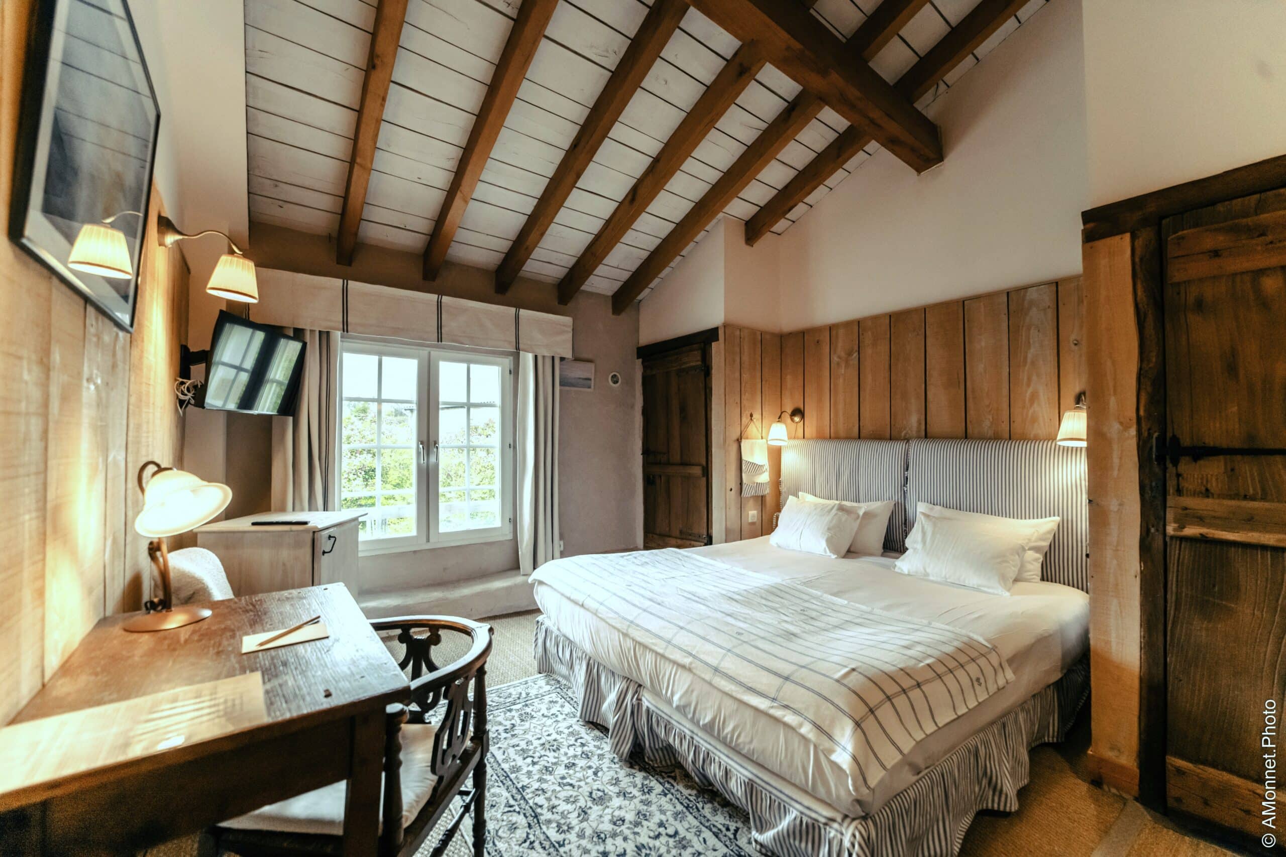 Chaque chambre possède son propre univers, entre douceur et élégance, avec des teintes naturelles et des matériaux nobles. Vous retrouverez cet esprit cocooning qui fait la réputation du Domaine de Bassilour, dans un cadre où il fait bon vivre, été comme hiver.