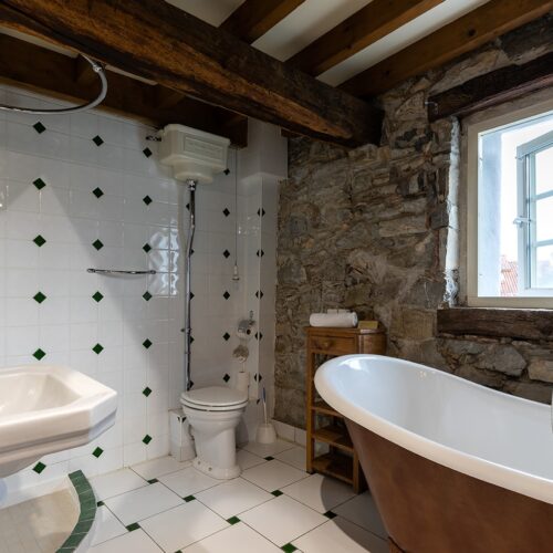 Une salle de bain élégante et fonctionnelle : La plupart de nos Chambres Supérieures disposent à la fois d’une douche ET d’une baignoire, parfaites pour se relaxer après une journée d’exploration du Pays Basque.