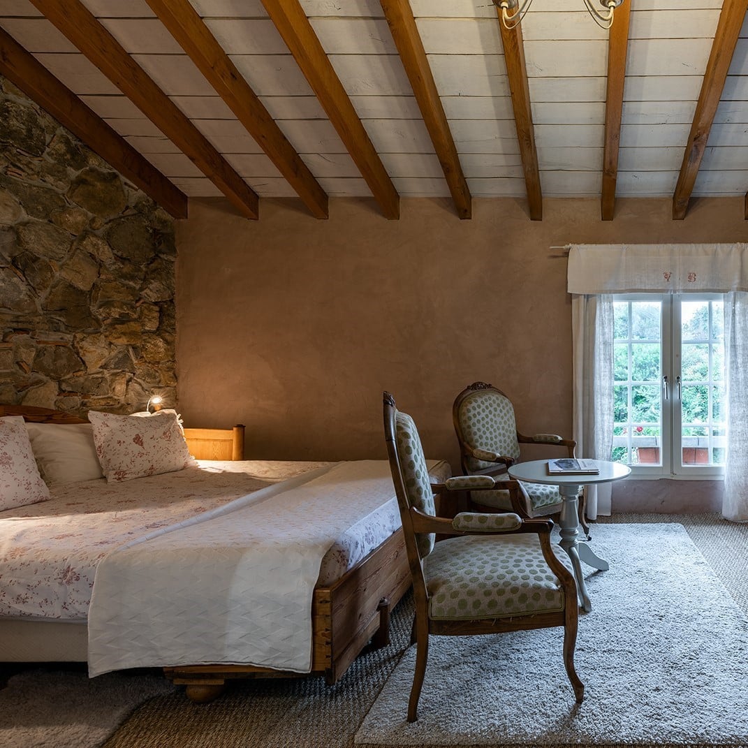 Chambre Luxe avec murs en pierre et poutres apparentes au Domaine de Bassilour à Bidart (2)