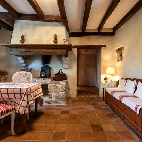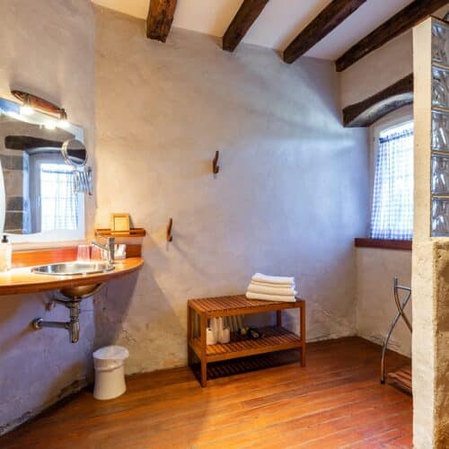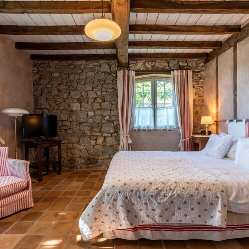 Chambre Luxe avec murs en pierre et poutres apparentes au Domaine de Bassilour à Bidart (2)