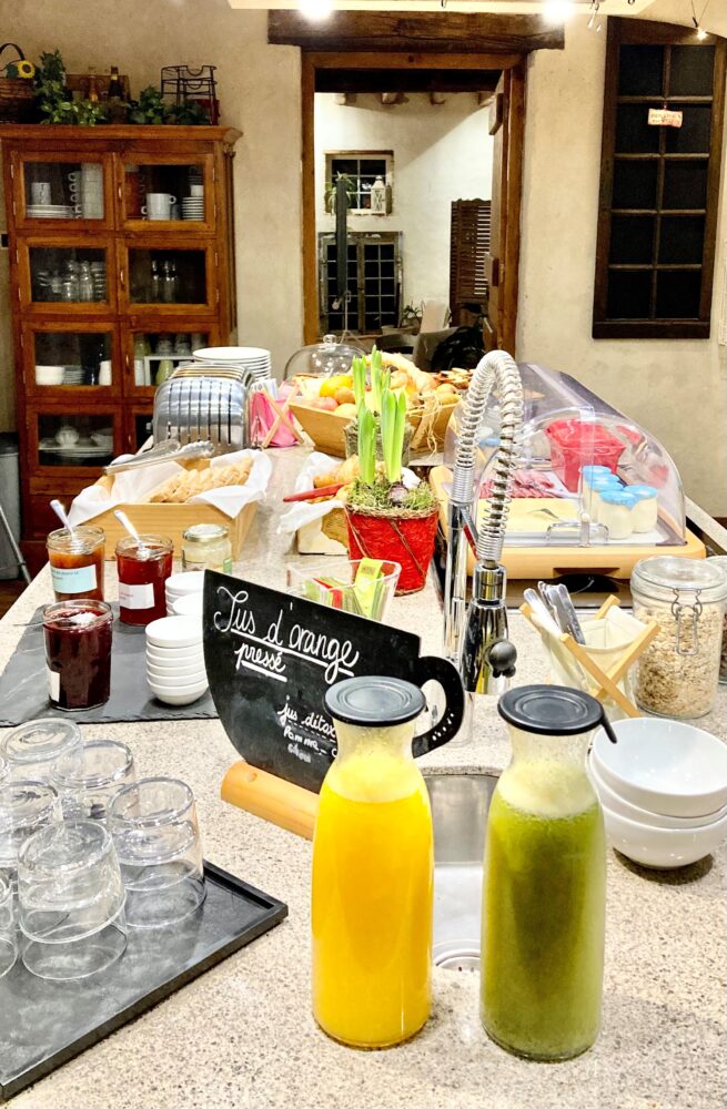 Nous travaillons avec des producteurs locaux: Le café est torréfié à Saint Jean de Luz. Les yaouts proviennent d’une petite ferme non loin du Domaine. Le jus d’orange est pressé maison. Quant-au jus détox: il varie selon la saisonnalité et la récolte de notre permaculture.